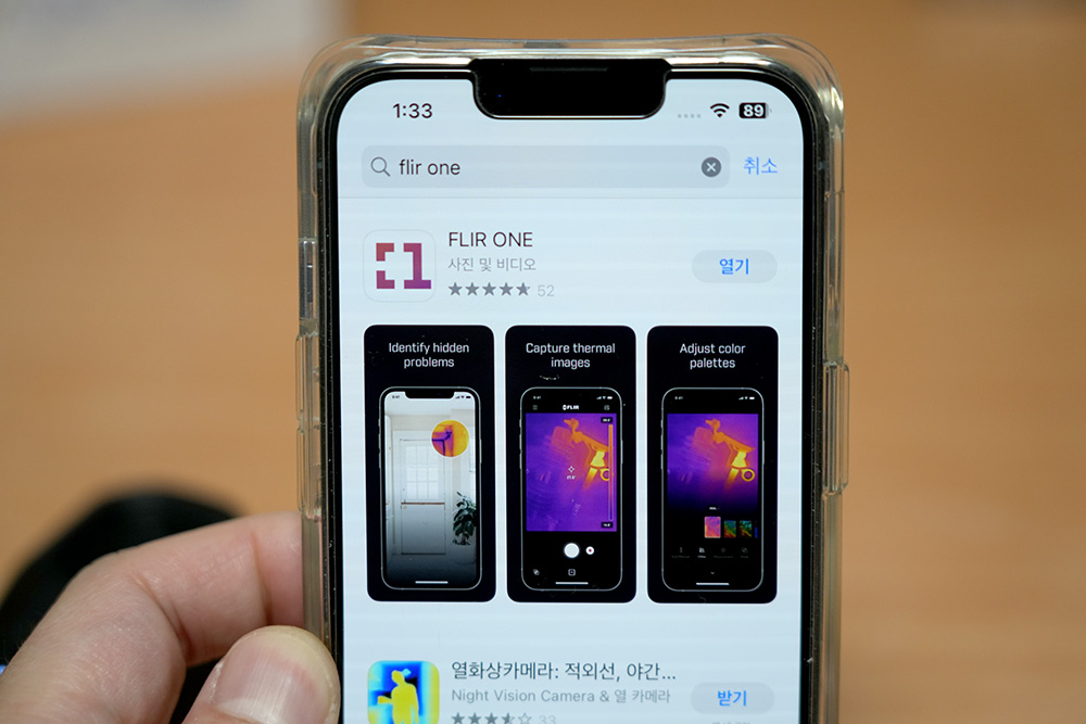 아이폰이나 안드로이드 스마트폰에서 "FLIR ONE" 앱을 검색해서 설치를 합니다.