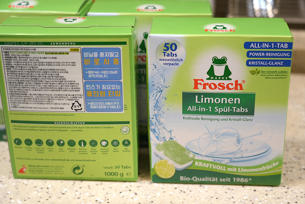 육아로 바쁜 시간을 보내고 있는데요. 그래서 그런지 자주 쓰는 물건에 대해서 소중함을 느낍니다. 프로쉬 식기세척기세제 를 최근에 구매를 했는데요. 그린레몬 50개입 4개를 구매를 했습니다. 식기세척기 세제는 정말 안쓸 수 가 없는데요. 정확히는 식기세척기를 매일 사용을 안할 수 가 없죠. 손설거지를 할 수 도 있겠지만, 안그래도 쉴 시간도 없고 바쁜데 설거지 한다고 시간 쓰고 있으면 정말 답답하죠. 프로쉬 식기세척기세제를 쓴 이유는 친환경 제품이라서 쓰고 있는데요. 식기세척기 세제를 쓰는데 있어서 세척력도 정말 중요한 부분인데 환경에 괜찮은지도 꽤 중요하더라구요. 실제로 그릇에 남아 있는 약간의 세제를 먹을지도 모르는데, 유해한 성분이 많이 들어있는것은 꺼림직 하니까요.