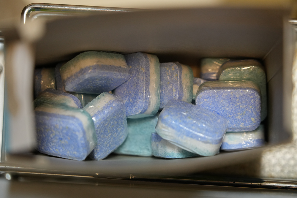 프로쉬 식기세척기 타블렛 1개 투입 합니다. 이 식기세척기는 밀레 자동 세제 투입기까지 있긴 하지만, 세제 가격이 비싸서 자주는 못쓰고 있어요.