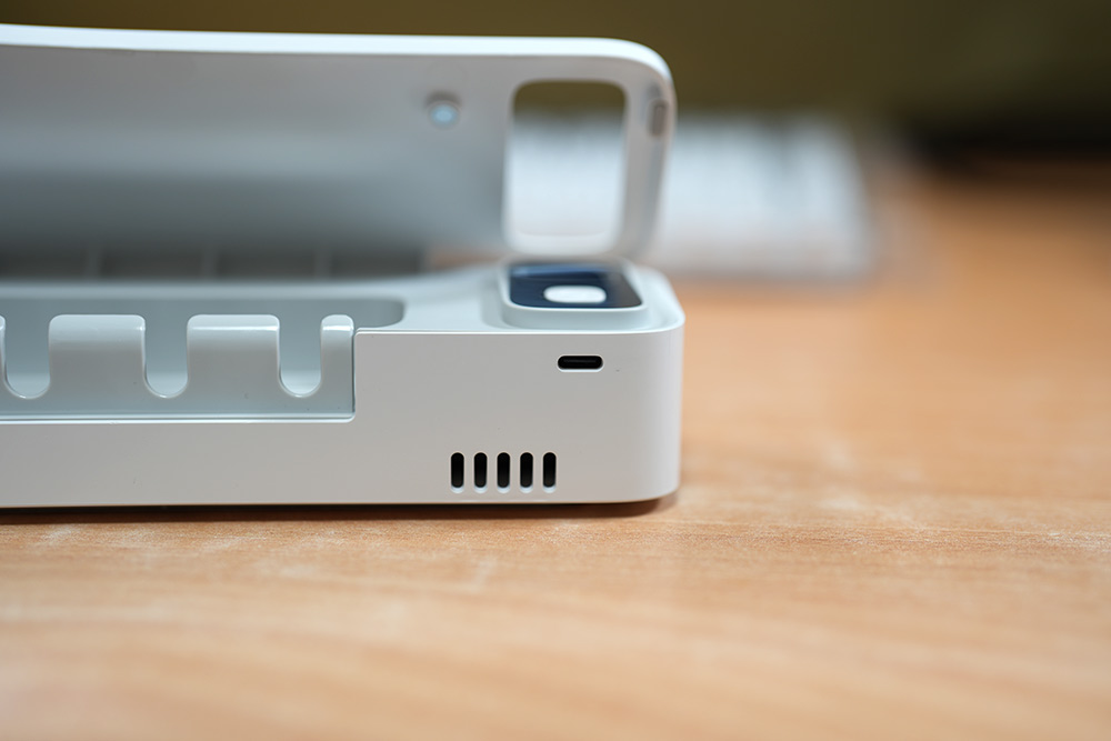 내부로 빨아드린 공기가 안쪽을 타고 나오면서 칫솔을 말려주는 형태 입니다.