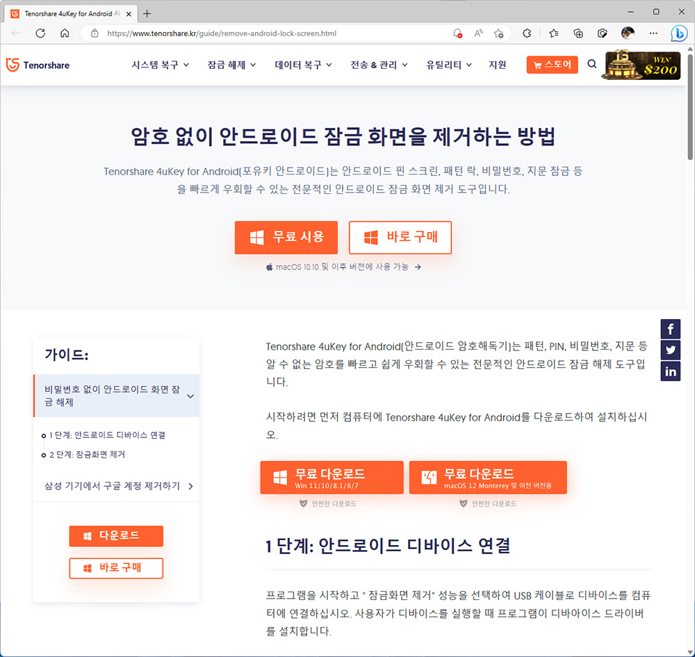 [공식]Tenorshare 4uKey for Android - 최고의 안드로이드 잠금 해제 프로그램