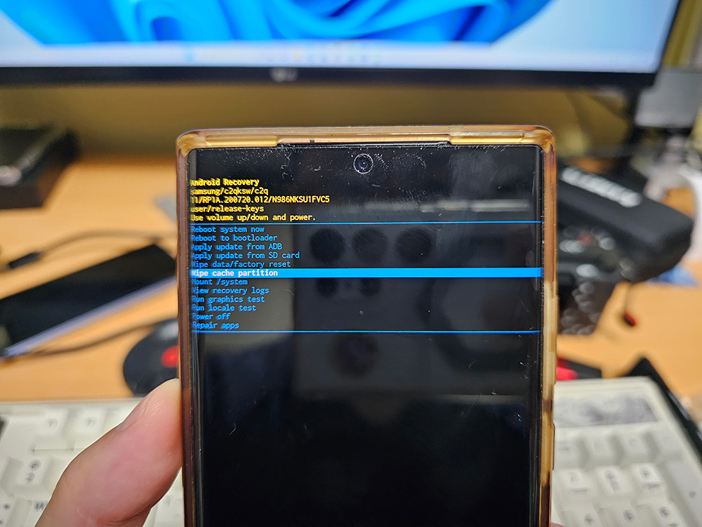 꺼진 상태에서 휴대폰을 충전기에 연결해서 호면이 나타날 때까지 볼륨 업버튼을 누른 뒤 다음 메뉴를 차레대로 선택을 합니다. 이것은 제조사 마다 좀 다를 수 있습니다.