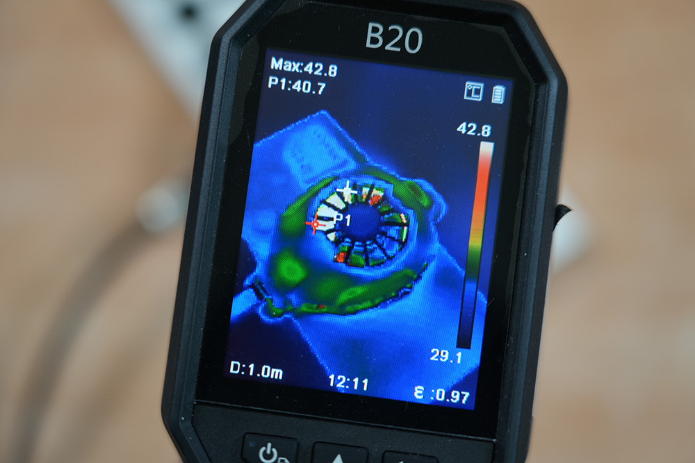 열화상카메라로 측정해보니 29.7도 정도 나옵니다. 상온과 거의 비슷한 온도가 나오네요.