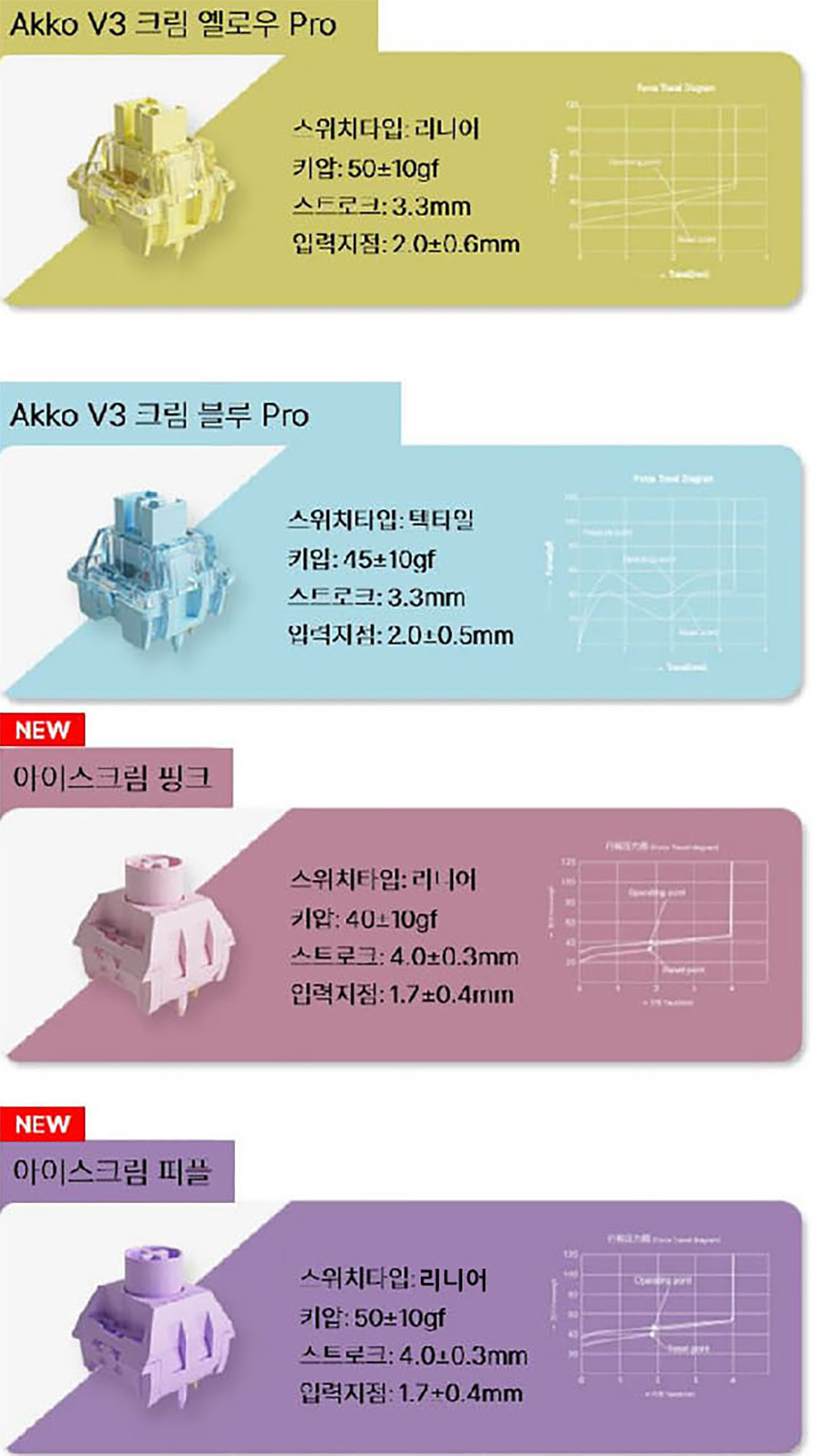 키 스위치별로 느낌이 다른데요. 개인적으로는 리니어 타입을 좋아하고 키압이 적당히 낮은게 좋은데요. 너무 키압이 낮아도 오히려 타이핑 할 때 불편할 수 도 있습니다.