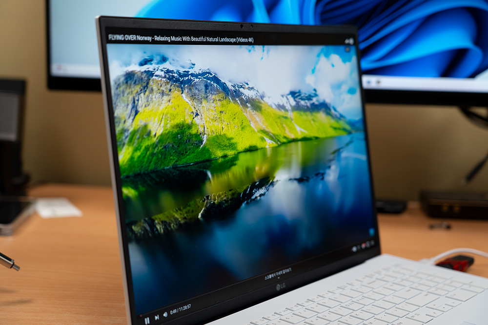 LG그램의 큰 틀은 바뀌진 않았지만 이제는 점점 화면은 더 커지고 성능도 더 좋아지고 있는데요. 13세대 코어프로세서가 P코어 E코어가 나와있는데, 이 부분은 노트북처럼 배터리 자원이 한정적인 경우 더 효율적으로 사용할 수 있는 시스템입니다. LG그램 2023은 효율적인 CPU와 Nvidia 그래픽카드가 들어가면서도 큰 화면으로 활용할 수 있는 노트북인데요. 실제로 사용해보니 게임을 전문적으로 하는 경우가 아니라면, 생산적인 작업을 하는 경우에도 충분히 활용할 수 있는 노트북 이었습니다.