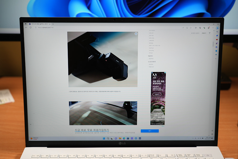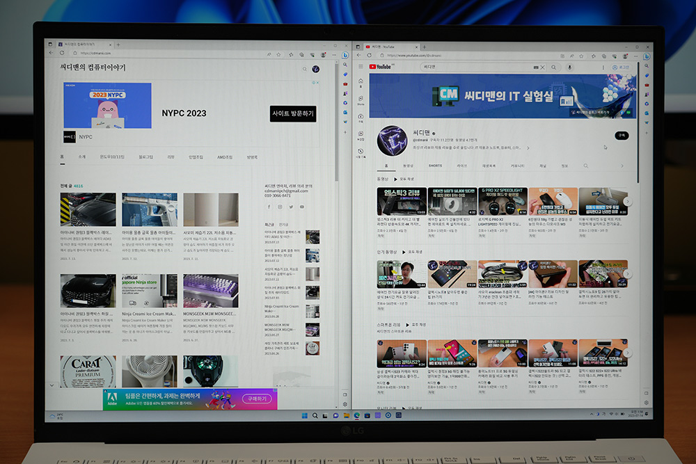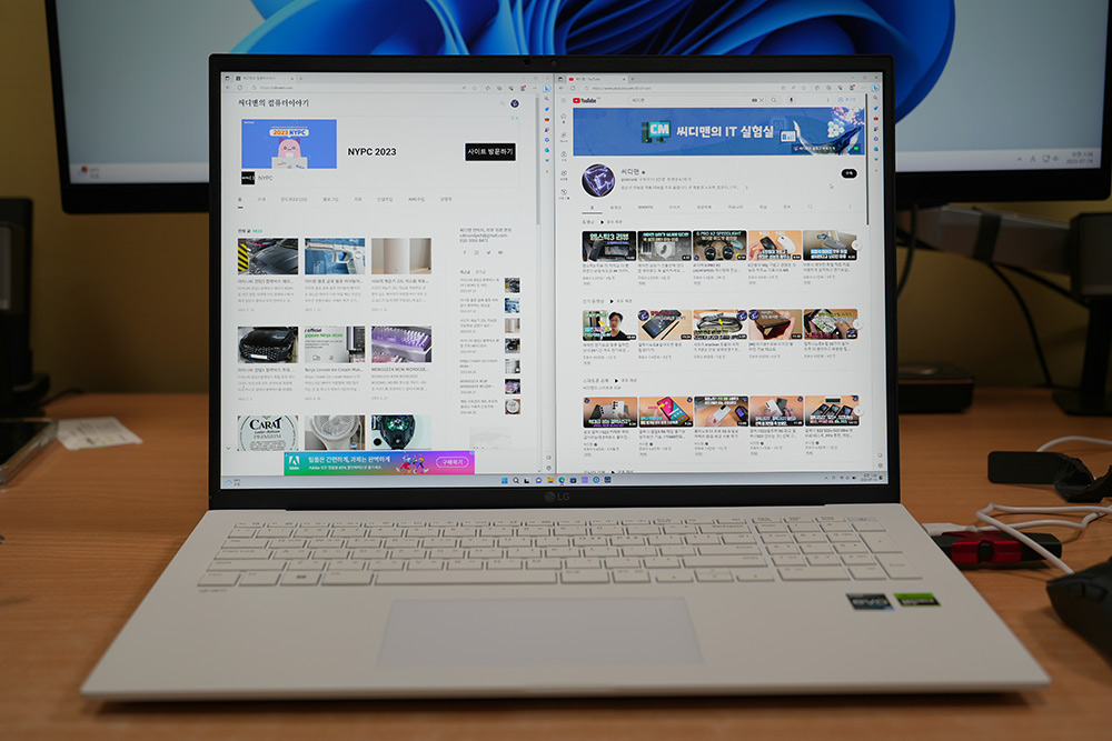 화면 사이즈가 17인치로 비교적 크고 2560 x 1600 해상도를 지원해서 화면 배율을 100%로 쓴다면, 웹사이트를 2개를 나란히 띄워놓고 모든 내용을 다 볼 수 있습니다.