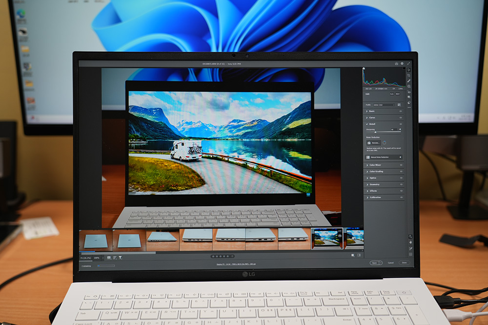빛반사를 줄이는 안티글레어 패널을 사용해서 문서작업이나 사진을 오래 바라봐도 눈이 덜 피로 합니다.