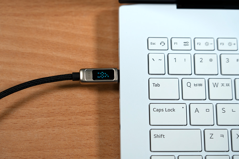 측면에 USB-C 포트를 통해서는 USB4.0 / 썬더볼트4를 대응 합니다. PD 충전도 가능해서 전원 연결해서 충전도 가능합니다. 별도로 충전기를 챙길 필요 없이 USB-C 보조배터리나 충전기를 이용해서도 충전이 가능합니다.
