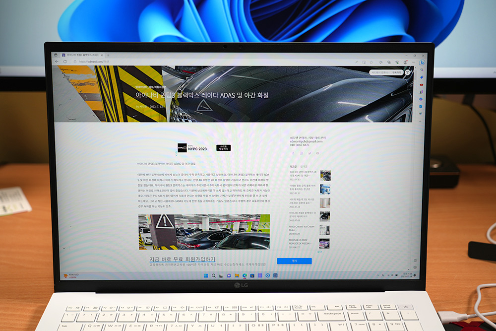 화면 사이즈가 17인치로 비교적 크고 2560 x 1600 해상도를 지원해서 화면 배율을 100%로 쓴다면, 웹사이트를 2개를 나란히 띄워놓고 모든 내용을 다 볼 수 있습니다.