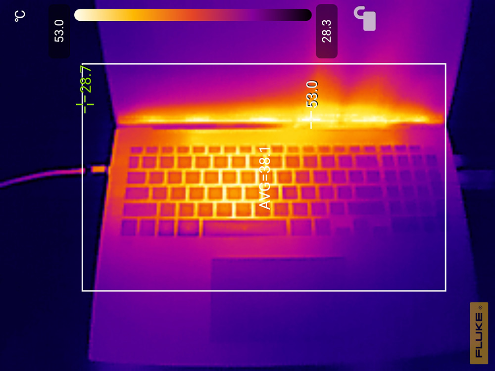 계속 작업하면서 발열도 측정을 해 봤는데요. 부하를 많이 걸었을 때는 통풍구쪽 발열이 좀 높게 올라갑니다. 팬속도는 많이 억제된 형태로 동작을 했는데요. 그런 이유로 키보드의 왼쪽손이 올라가는 부분은 약간 발열이 느껴집니다.