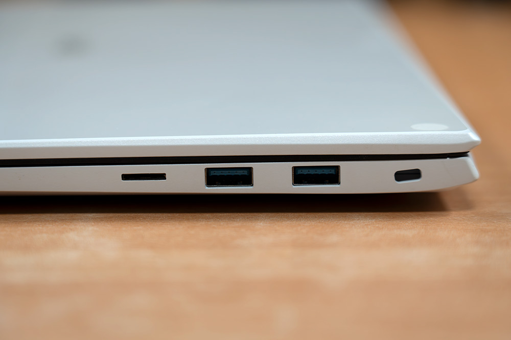 오른쪽 측면에는 USB 3.2 Gen2 포트가 들어가고, 보안키 홀과 MicroSD 카드 슬롯이 있습니다.
