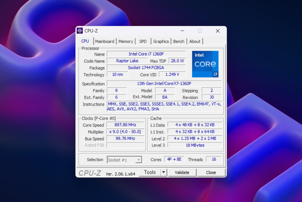 i7-1360P 프로세서가 사용되었는데요. 12코어 총 16쓰레드로 동작을 합니다.