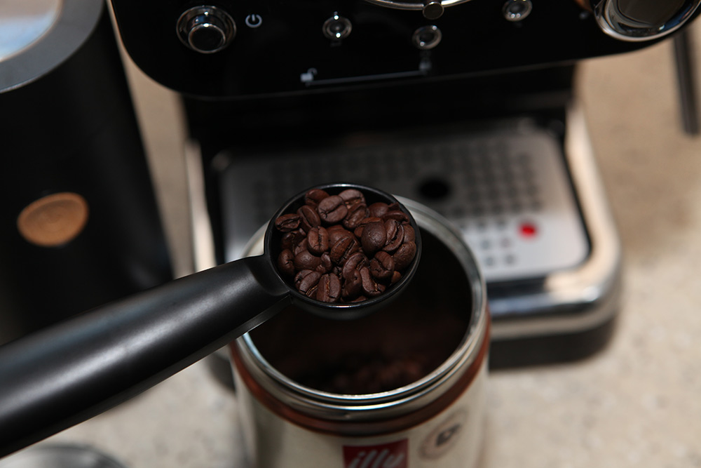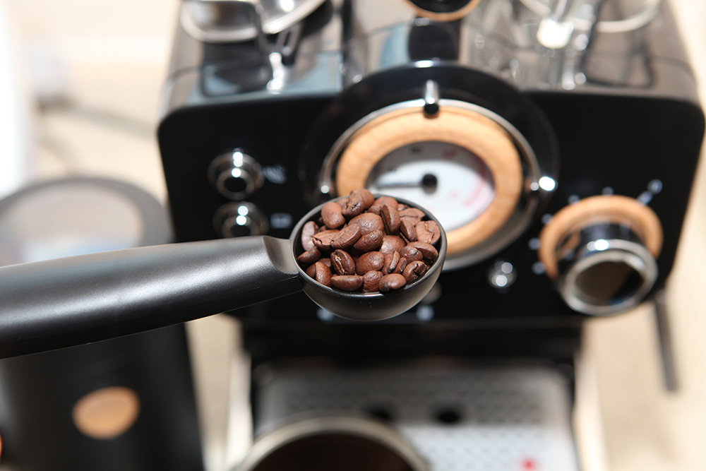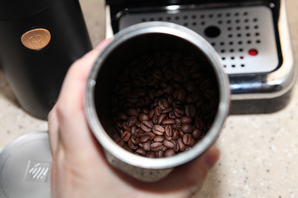 분쇄기에 넣어서 분쇄 후 커피머신에 넣고 추출해서 먹는데요.