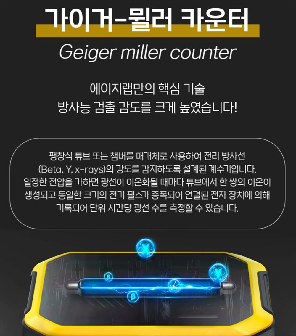 감마 방사선만 측정해도 충분하긴 할텐데 이 제품은 x, y 방사선까지 측정된다고 나오네요. 감도를 충분히 높여둬서 그런건지. 잘은 모르겠지만 나쁘진 않을 것 같습니다. 여튼 1-2만원대 저가형 제품보다는 확실히 성능은 좋을듯 하구요.