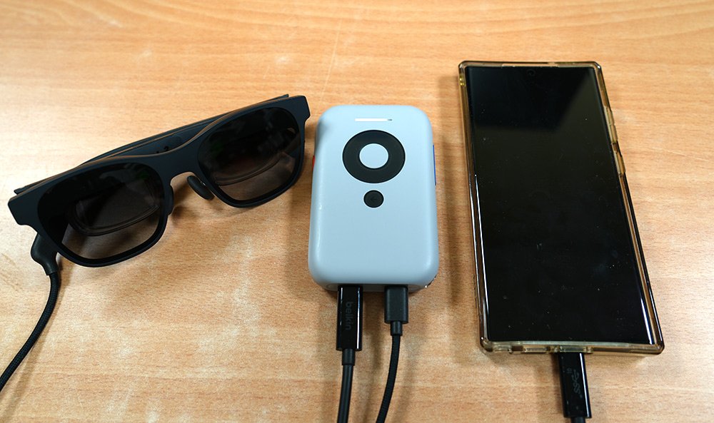 유선 케이블이 번거롭고 불편해 보일 수 있지만 얼굴에 착용하는 안경 형태의 XREAL Air2가 배터리가 들어가서 무거워지고 부피가 커지는것에 비해 XREAL Beam을 쓰면서 활용성을 높이는 방향이 훨씬 좋았습니다.