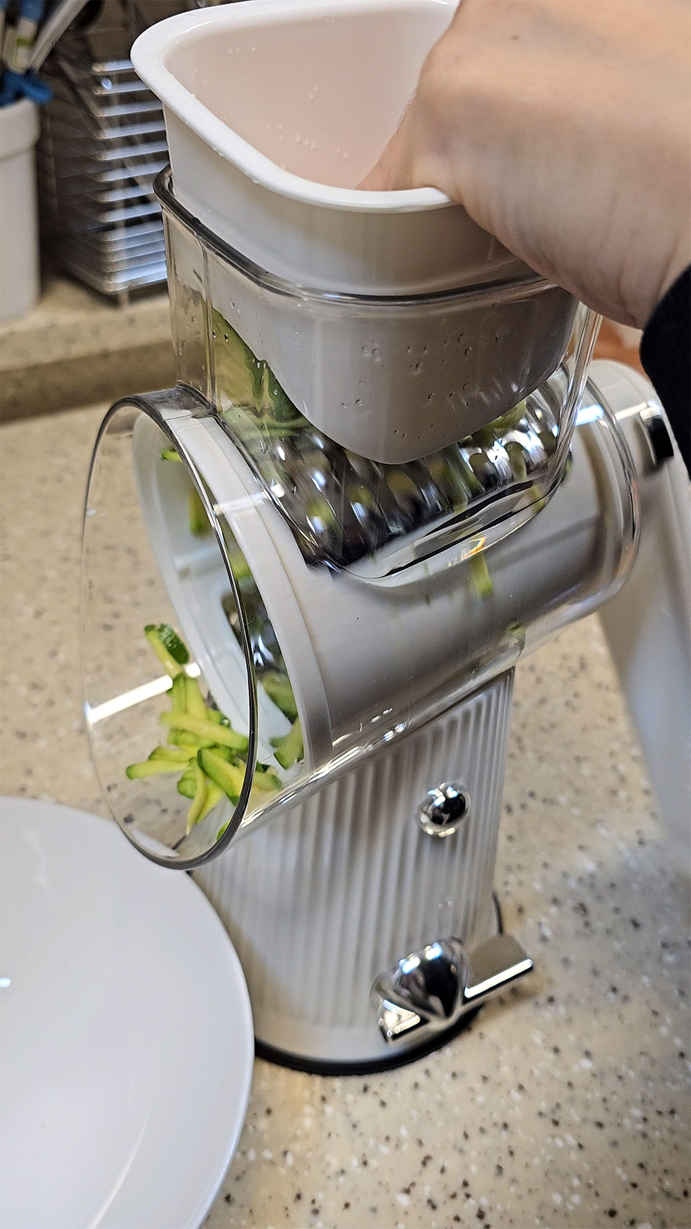 애호박과 당근을 이용해서 전을 붙여 먹으려고 하는데요. 샤오미 JINGCHU 다용도 드럼통 안전 채칼을 사용 해 봤습니다. 이런 거 있으면 편할것 같다는 생각은 했는데요. 물론 집에 채칼이 없는 것은 아니지만, 샤오미 JINGCHU 다용도 드럼통 안전 채칼을 쓰니까 더 편하긴 했습니다. 적은 힘으로도 돌리면 안전하게 야채를 갈아낼 수 있었습니다.