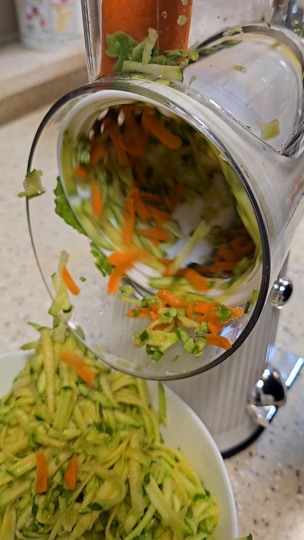애호박과 당근을 이용해서 전을 붙여 먹으려고 하는데요. 샤오미 JINGCHU 다용도 드럼통 안전 채칼을 사용 해 봤습니다. 이런 거 있으면 편할것 같다는 생각은 했는데요. 물론 집에 채칼이 없는 것은 아니지만, 샤오미 JINGCHU 다용도 드럼통 안전 채칼을 쓰니까 더 편하긴 했습니다. 적은 힘으로도 돌리면 안전하게 야채를 갈아낼 수 있었습니다.