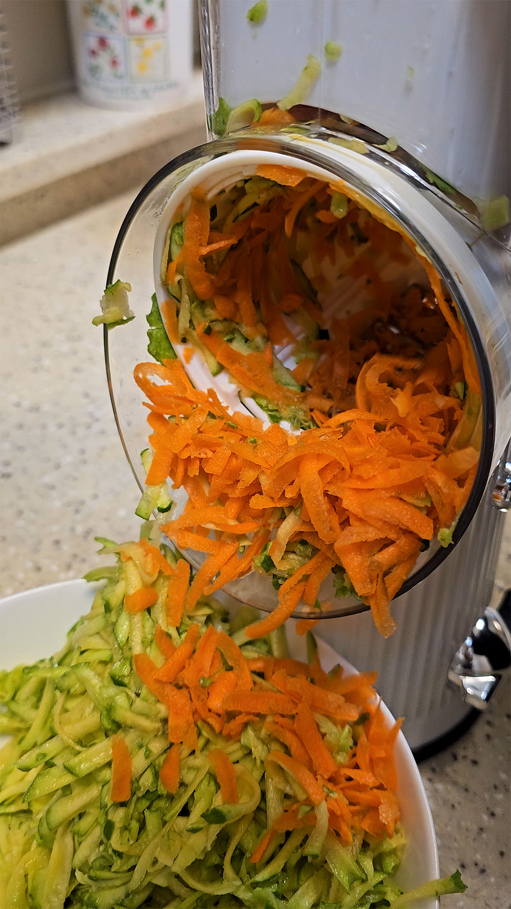 당근도 같이 갈아버리면 이렇게 모양이 나옵니다. 어차피 섞어서 전을 만들거라 그냥 바로 바로 갈아줬는데요.