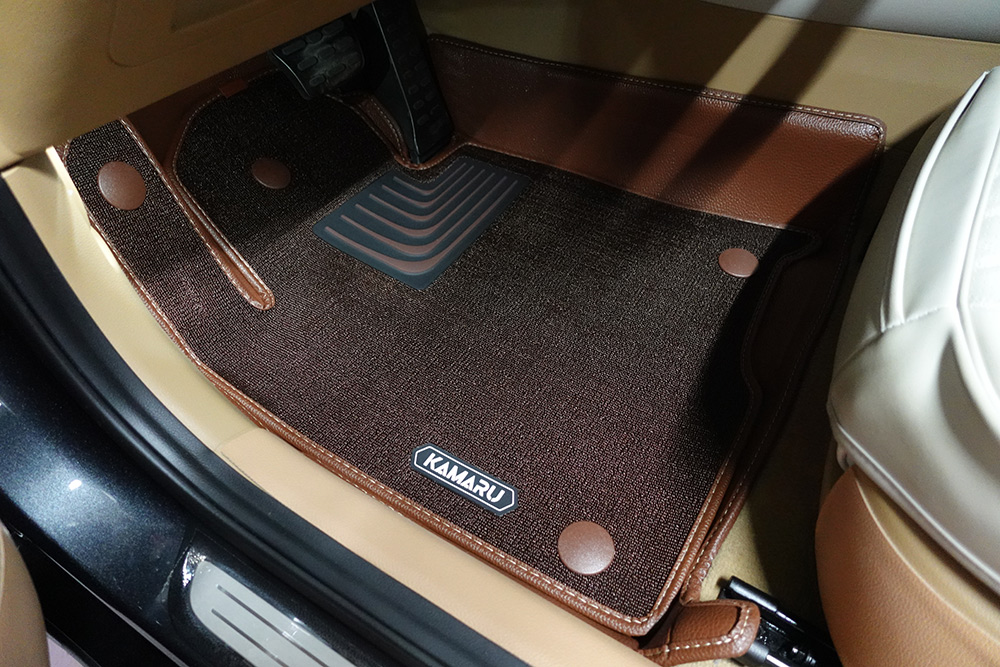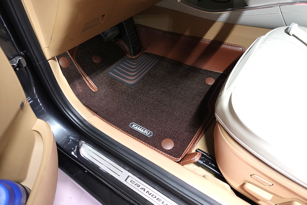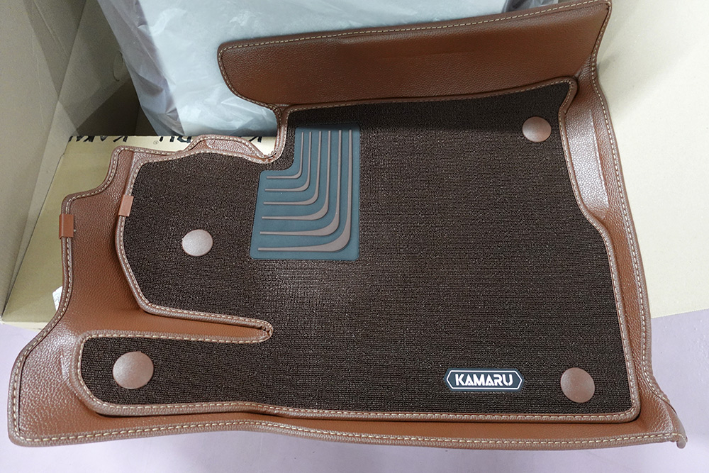운전석을 먼저 꺼내 봤는데요. 일반 코일매트는 저렴하고 좋긴 하지만, 내구성이 약하고, 주변 부분에 모래가 튀면 반드시 들어서 청소가 필요합니다. 사방팔방 다 튀기 때문에 그부분을 잡아줄 부분이 없기때문이죠. 근데 카마루 듀라코어매트는 이전 버전도 그랬으나 아래쪽에 가죽매트가 있어서 모래가 튀더라도 안쪽에서 잡아줍니다.