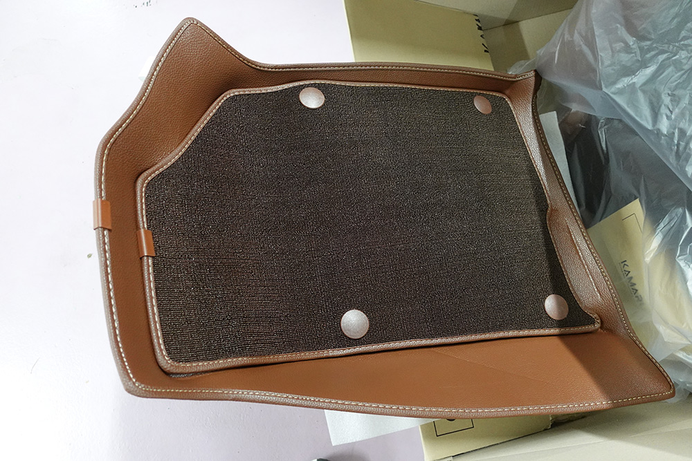 맨 아래쪽에 들어가는 가죽매트 경우에는 좀 두께감이 있고 질기고 조금 단단한 느낌으로 되어있었습니다.