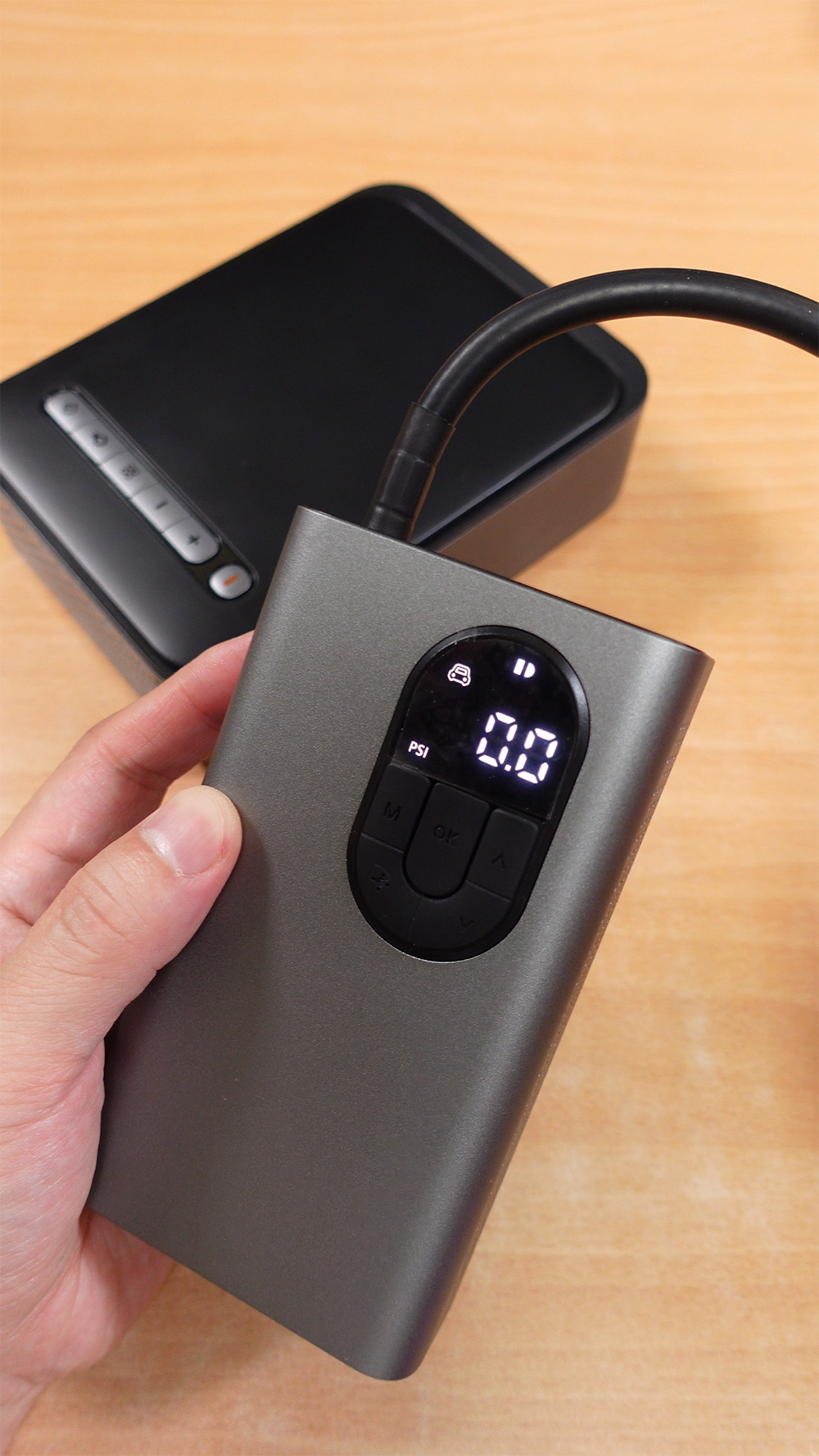 그런데 지금 소개하는 베이스어스 점프스타터 에어펌프는 평상시 에어펌프 역할로 사용이 가능합니다. 배터리 잔량도 백분율로 나와서 확인하기 편합니다. 타이어 공기압은 냉간시 기준으로 맞추는게 좋은데요. 바람을 무료로 넣겠다고 세차장이나 타이어 가게 등으로 이동을 하면 그 때 타이어가 열을 받아서 적절한 공기압을 맞추는게 어렵습니다.
