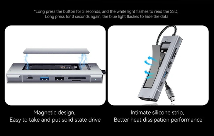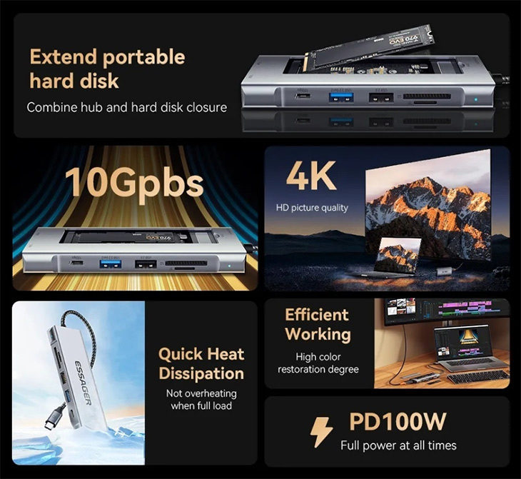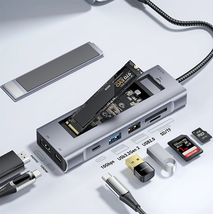 Essager 8 in 1 USB 허브 SSD와 모니터, USB 허브 카드리더기까지