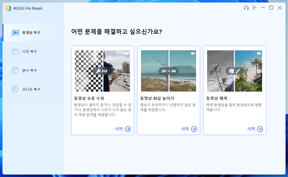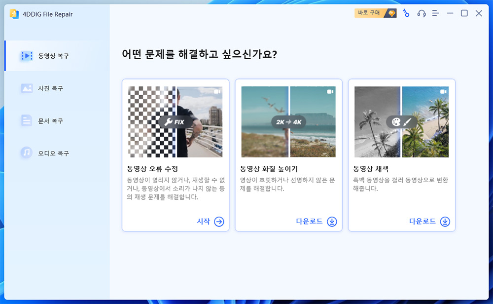영상복구나 사진복구, 그리고 사진이나 영상 보정 프로그램은 개별로 있는것은 봤지만 4DDiG File Repair는 모든 기능을 하나의 프로그램에서 할 수 있습니다.