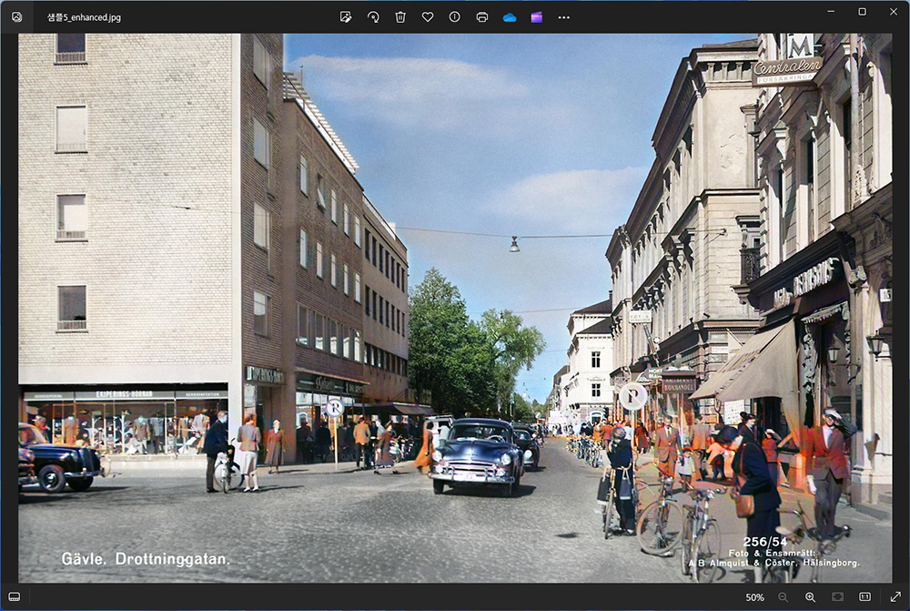 색을 입혀서 멋지게 연출할 수 있습니다. 건물이나 하늘, 구름, 인물등 색을 알맞게 배치해서 입혀줍니다. 이것도 많이 학습된 데이터를 기반으로 작업을 하는 것인데요. 요즘은 AI가 일을 다 하네요.