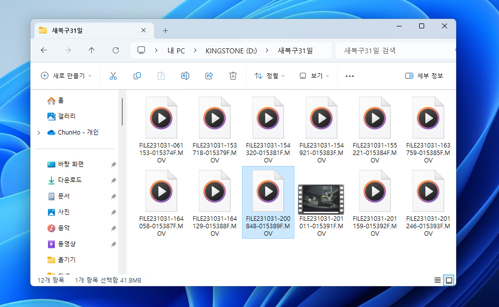 실제로 블랙박스 파일을 복구를 한 것인데요. 파일 하나는 재생이 되는데 나머지는 모두 재생이 안되는 상태 입니다.