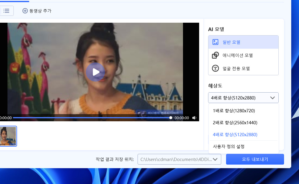 동영상 화질 높이는 방법도 있습니다. 옛날 영상이나 화질이 떨어지는 영상을 개선하는 작업이 가능합니다.