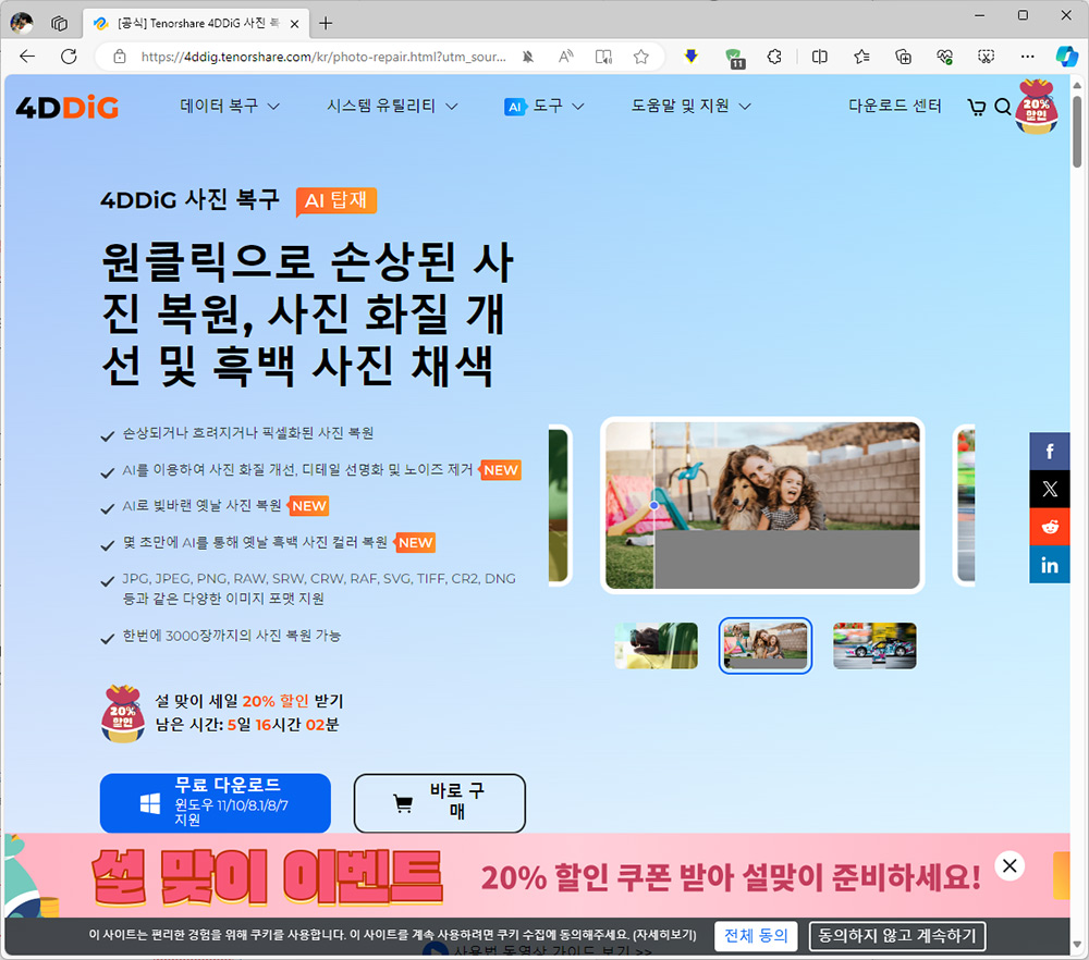 [공식] Tenorshare 4DDiG 사진 복구: 손상된 사진 복구, 화질 개선 및 컬러 복원