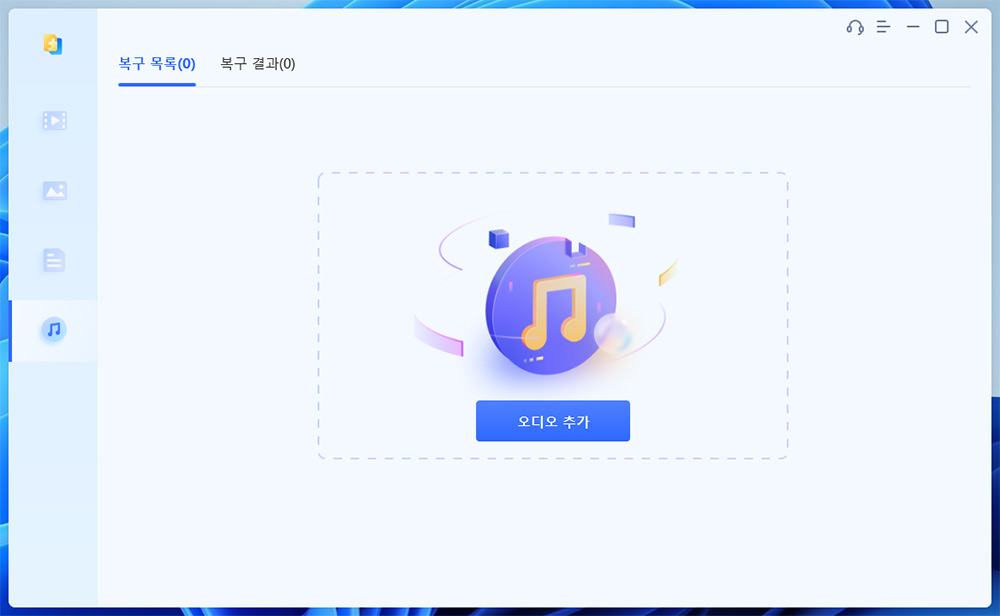 오디오 파일, 목소리가 녹음된 파일등도 손상된 경우에 이 프로그램을 통해서 복구가 가능합니다.