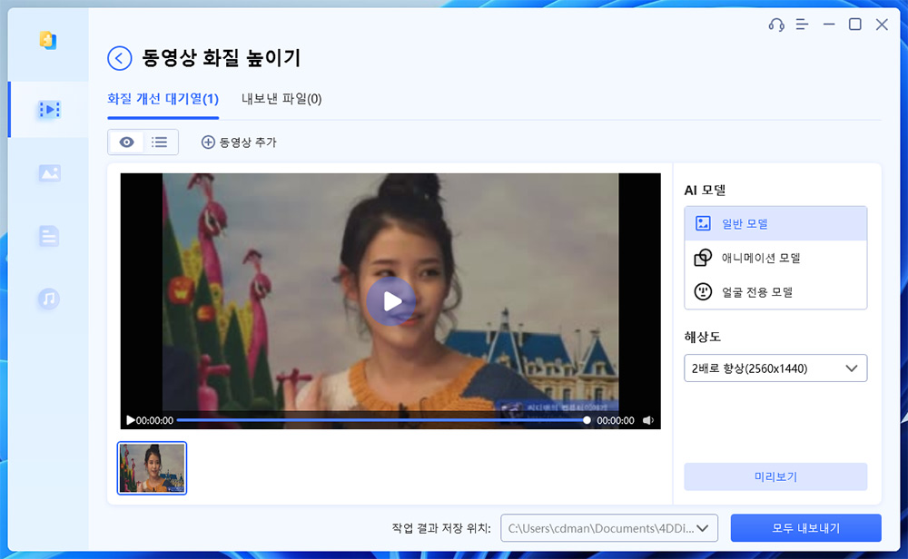 AI모델은 일반모델, 애니메이션모델, 얼굴 전용 모델이 있는데요. 일반 모델은 대부분에 맞고, 만약 에이메이션이면 그에 맞게 선택하면 좀 더 완벽하게 보정이 됩니다. 얼굴 전용은 얼굴이 흐릿하게 나왔을 경우 얼굴을 거의 새로 그려주는 수준으로 복원이 가능합니다.