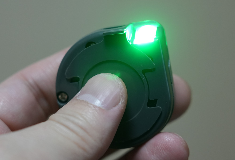 버튼을 누르면 녹색 빛이 나오는데요. 정면으로 보면 눈이 좀 아픕니다. 직접 보는것은 좋지 않아요.