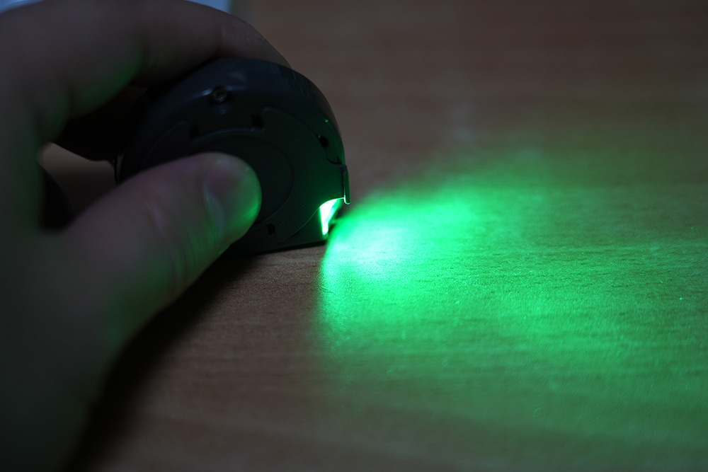 버튼을 누르면 녹색 빛이 나오는데요. 정면으로 보면 눈이 좀 아픕니다. 직접 보는것은 좋지 않아요.