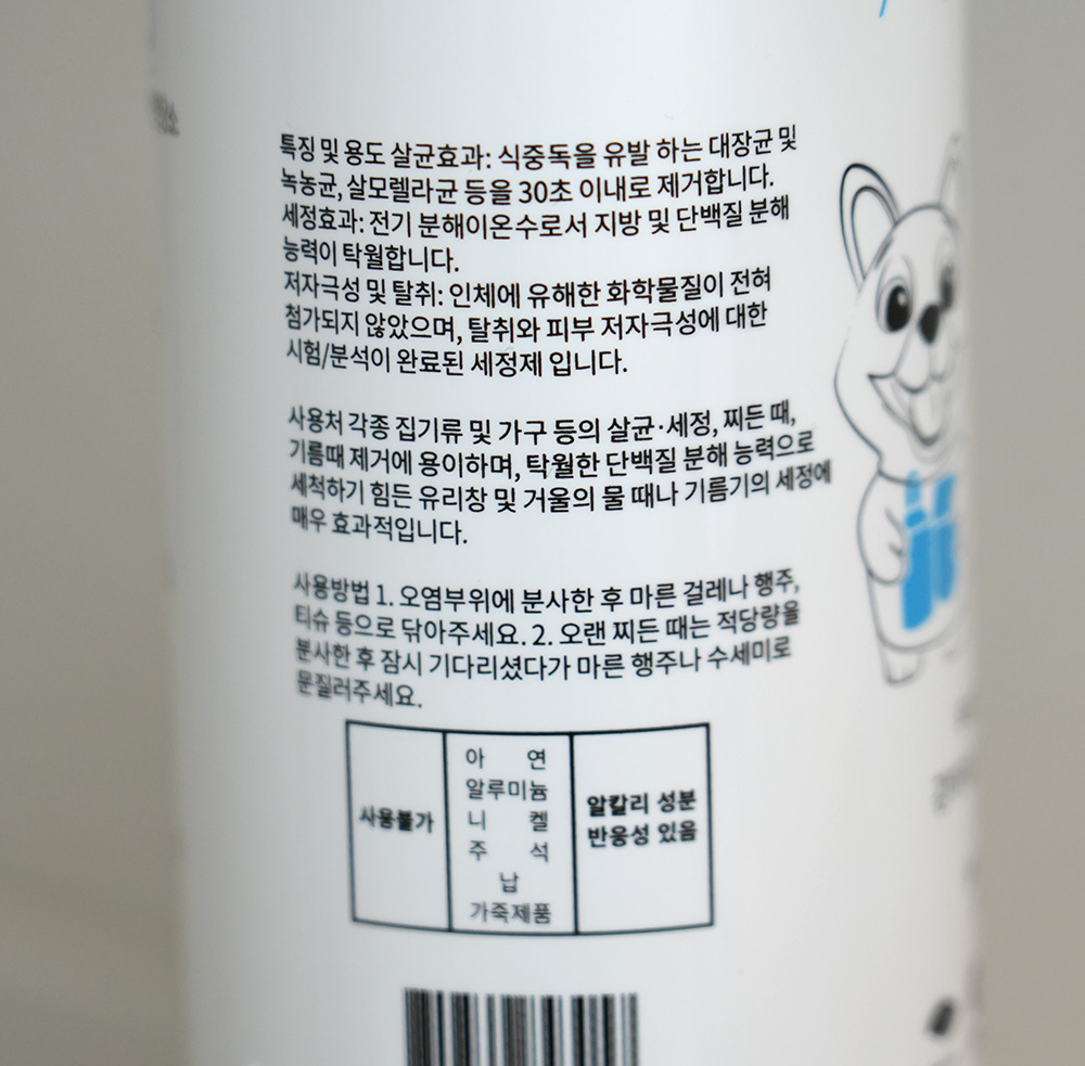 힘을 많이 들이지 않고 청소가 가능했구요. 뿌리는 것 만으로도 대장균이나 식중독을 일으키는 것들이 제거 된다고 하니 뭔가 안심도 되네요.