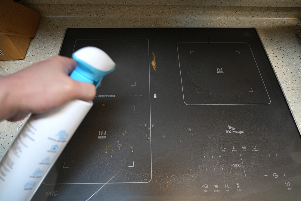 요리하고 나면 인덕션이 항상 엉망인데요. 바로 바로 닦아야하는데 귀차니즘으로 한동안 뒀다가 닦으면 음식물 등이 바로 잘 닦이진 않습니다. 물에 적신 타올로 한참 강하게 문지르거나 또는 세제를 위에 뭍혀서 좀 박박 문질러야 닦이는데요.