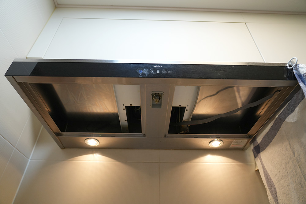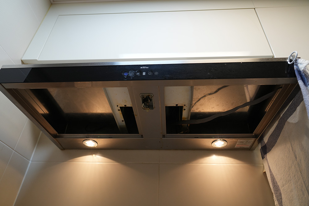 주방 후드도 청소를 해 봤습니다. 안에 뭔가 오염이 많이 되어있네요. 누런 것들이 많이 보입니다.