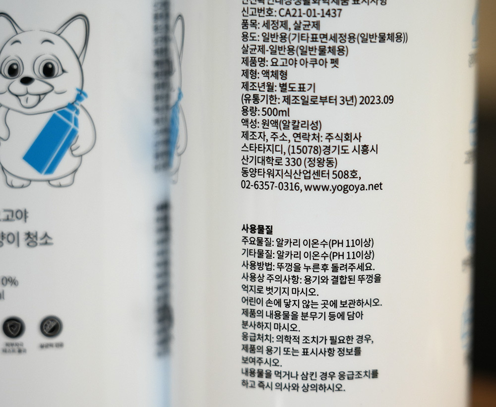세균을 박멸하고 표면도 깨끗하게 만드는 여러가지 제품이 많이 있는데요. 요고야 아쿠아 펫은 애견용품 필수품으로 안전하게 세균 및 세척 하고 싶을 때 쓰면 좋은 제품 입니다. 오직 물만 이용해서 전기분해를 이용해서 알칼리수를 만들었는데요. 요고야 아쿠아 펫은 알칼리 이온수로만 되어있는데요. 보통 세척력을 강하게 만들기 위해서 락스를 희색해서 사용하기도 하는데요. 이 경우 애완견이나 고양이가 좋아하지 않을 수 있습니다. 물론 그 향기가 사람에게도 좋지는 않죠. 요고야 아쿠아 펫는 실제로 사용해보니 전혀 향기가 나지 않았습니다. 그냥 물 같았는데 전기 분해해 강알칼리성으로 만든 물이라 그런지 오염된 표면에 뿌리면 쉽게 분해되어 잘 닦입니다.