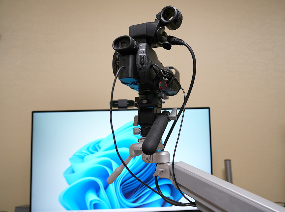 4K 캠코더도 거치해놓고 사용하고 있는데요. 상단 부분에는 스몰리스 비디오 해드를 달았습니다. 필요한 위치로 간단하게 옮기고 , 촬영할 위치로 카메라를 고정 시킨 뒤 촬영이 가능합니다. 부드럽게 위치를 옮기면서 촬영하는것도 연습하면 할 수 있습니다.