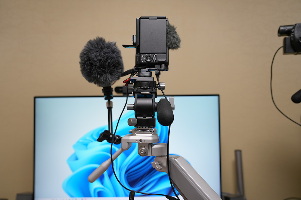 카메라를 필요할 때마다 옮겨서 바로 촬영하고 필요하지 않으면 한쪽으로 치워두면 되어서 너무 편합니다. 참고로 책상을 치면 살짝 진동이 들어오기 때문에 책상은 별도의 다른 책상에 거치하는게 좋긴 합니다. 또는 천장까지 올리는 거치대를 이용하면 책상이 하나라고 하더라도 진동없이 사용 할 수 있습니다.
