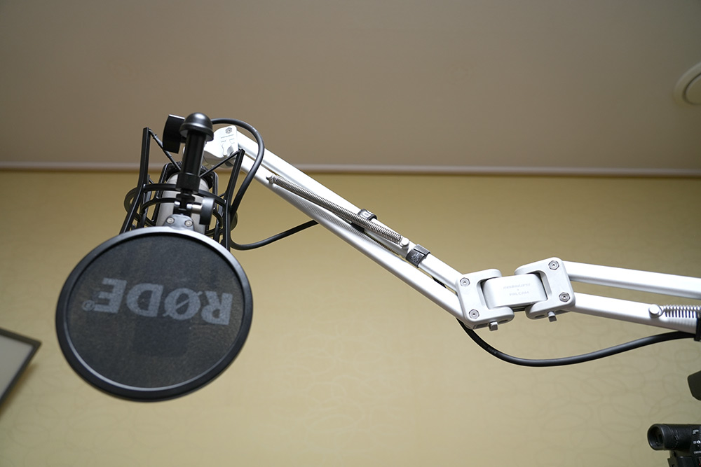 RODE NT-1A 마이크를 사용하고 있는데요. 마이크를 사용할 때는 내려서 사용하고, 사용하지 않을 때는 위로 올려서 간섭이 없도록 옮겨 놓습니다.