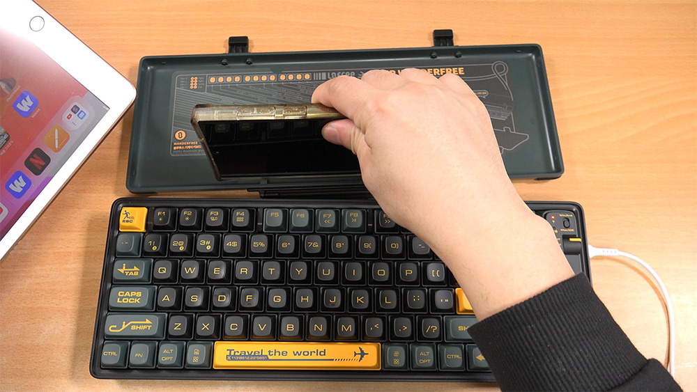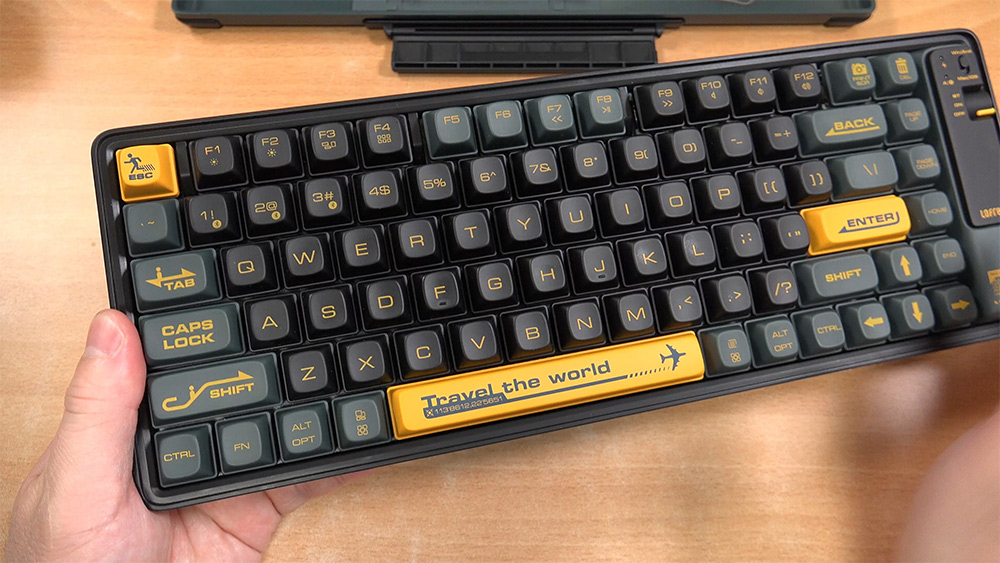 여행을 다니시고 사진을 많이 찍는 분들에게 어울리는 키보드 소개 합니다. 로프리 기계식 키보드 84키 Lofree 휴대용 블루투스 키보드인데요. 여행감성에 맞춰서 케리어 디자인으로 되어있는데요. 외부에 키보드 커버가 있습니다. 로프리 휴대용 블루투스 키보드는 키캡도 특이한데요. 여행에 어울리는 로고들이 키캡에 들어가 있습니다. 키보드 사실 다 비슷비슷하다고 생각해서 좀 디자인적으로 특별하게 만든 것이죠.