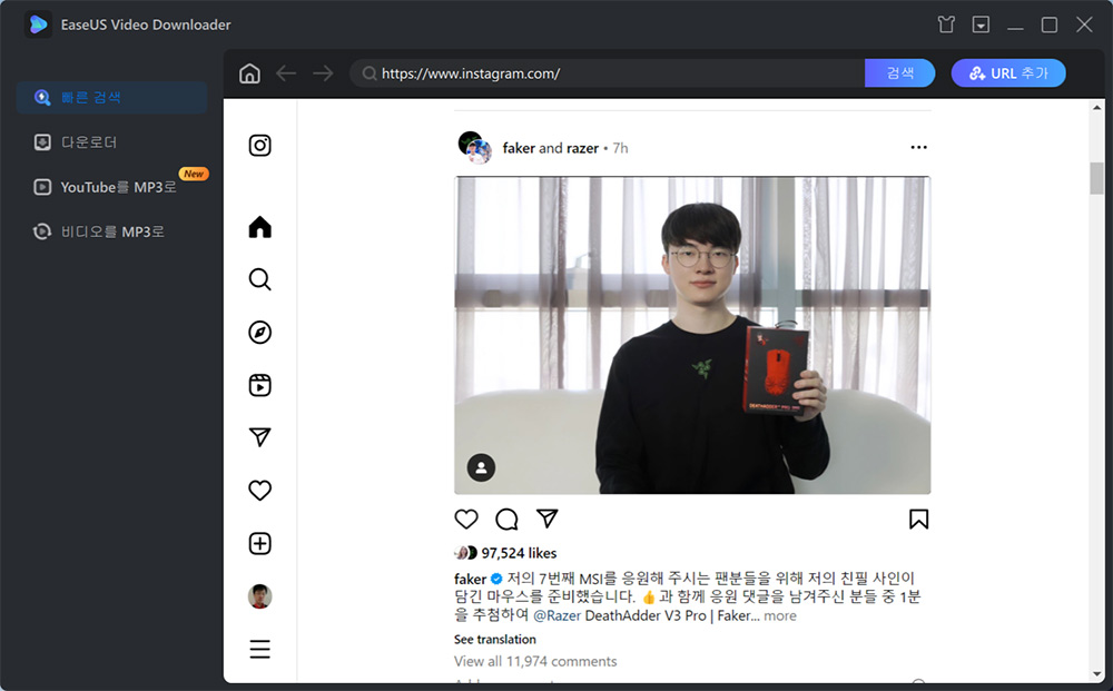 1000개 이상의 사이트에서 비디오 및 오디오를 다운로드하는 안전한 비디오 다운로더 - EaseUS