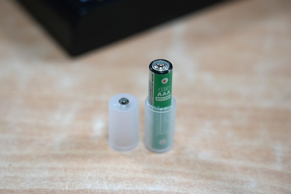 AA 건전지가 필요한 경우에는 AAA 충전지를 컨버터에 넣으면 됩니다.