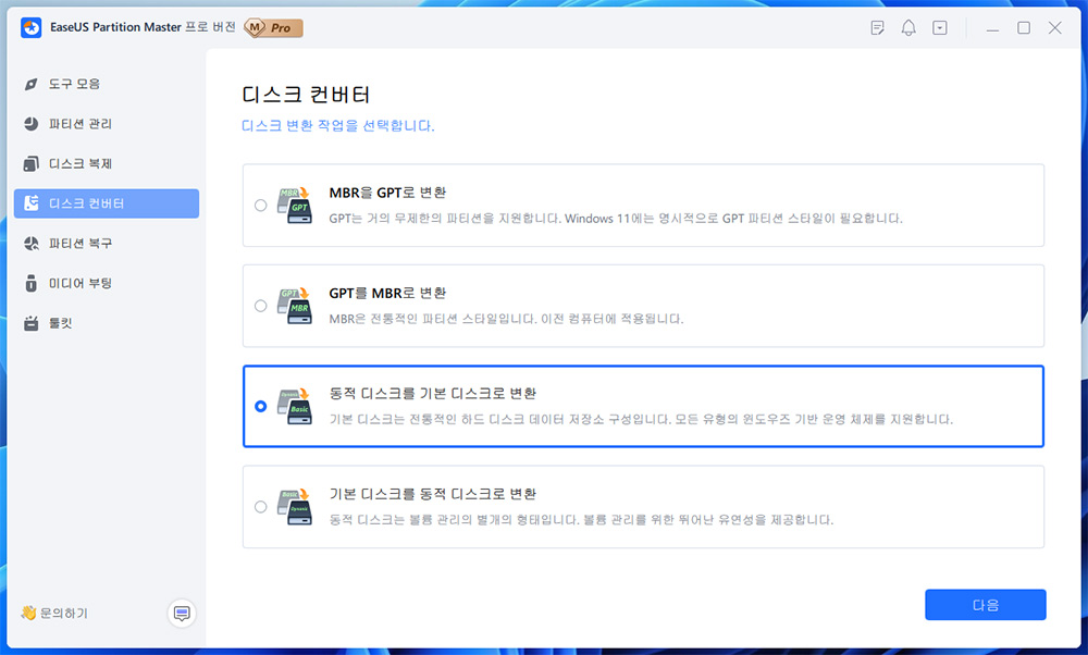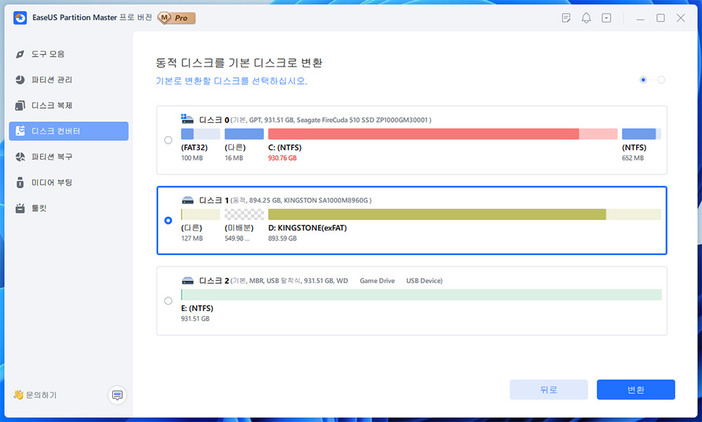 그런데 이 프로그램을 이용하면 동적 디스크를 간단하게 기본 디스크로 변경이 가능합니다.