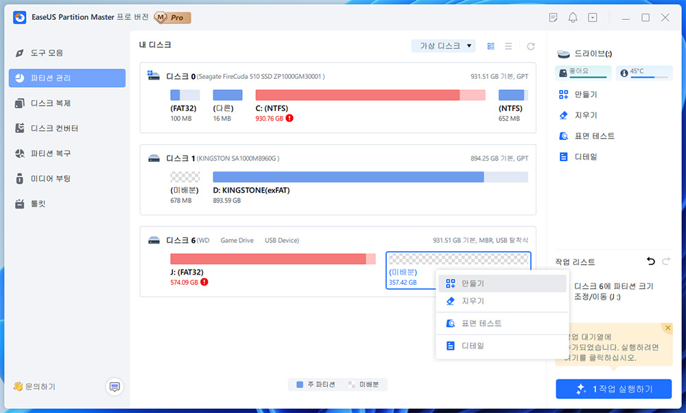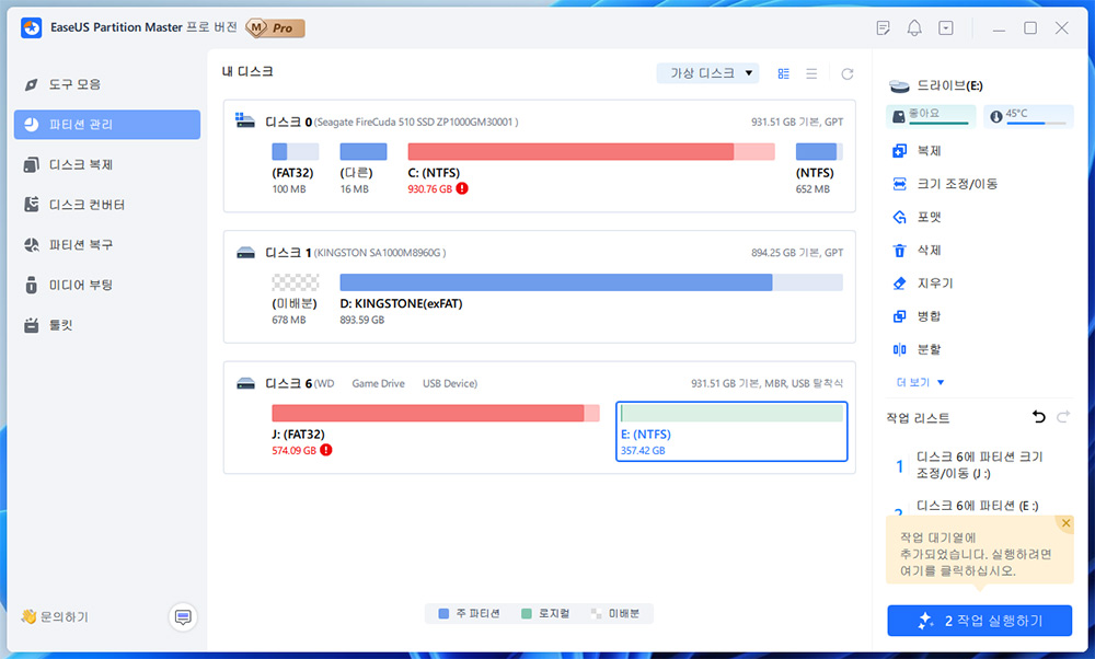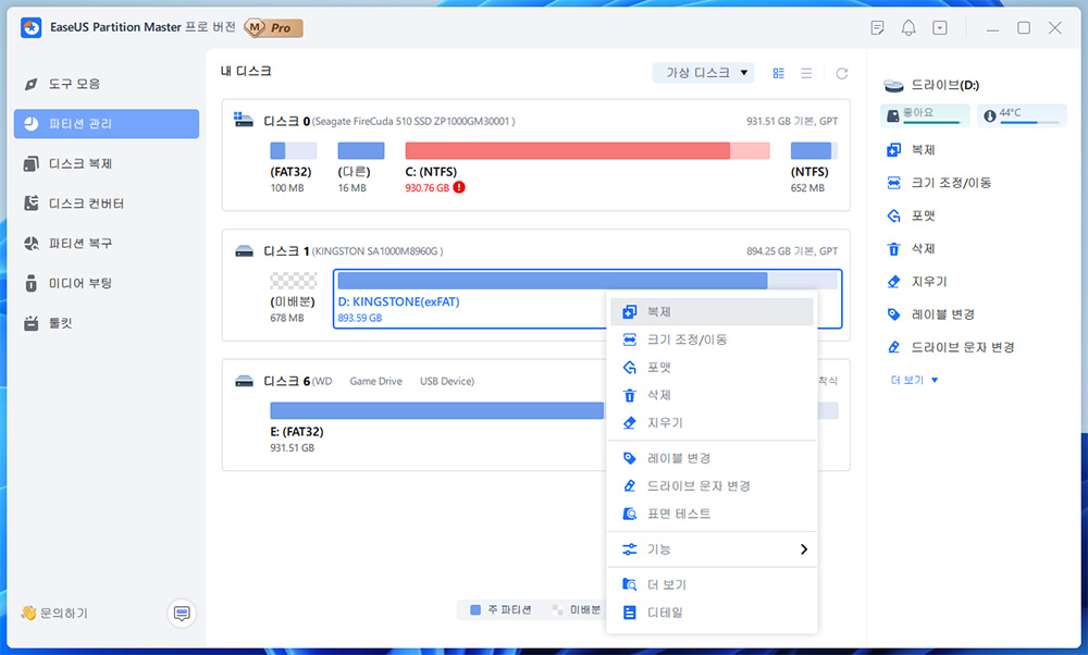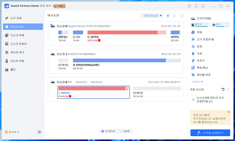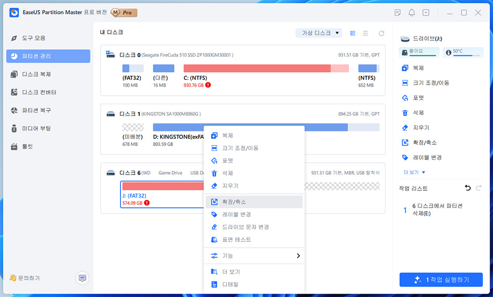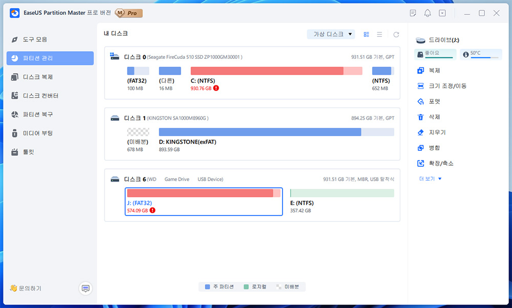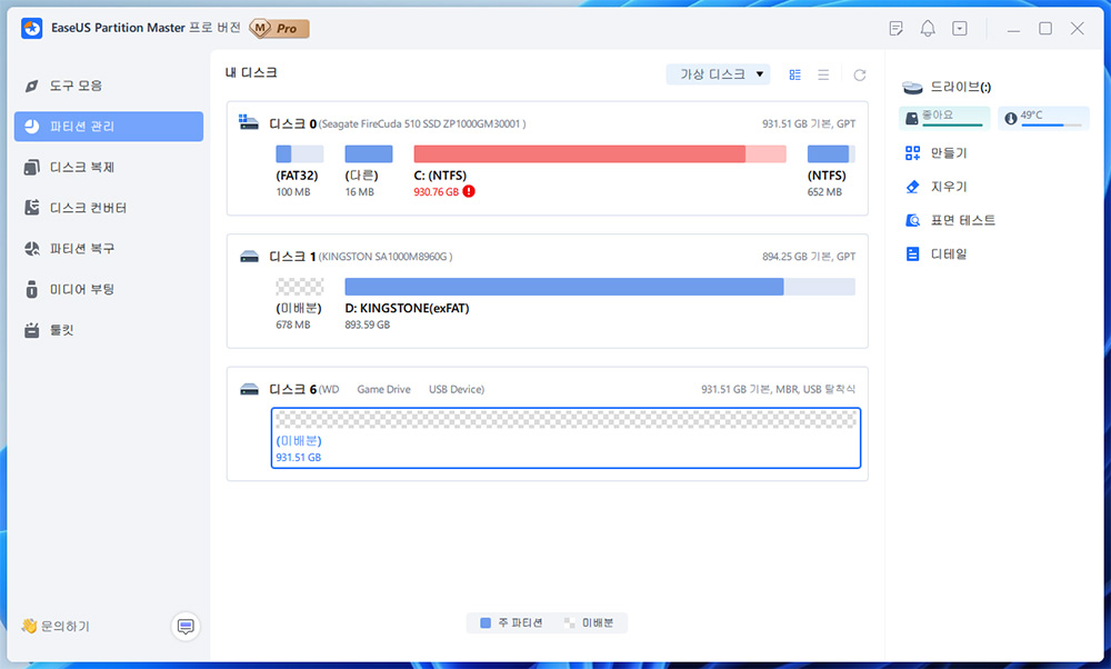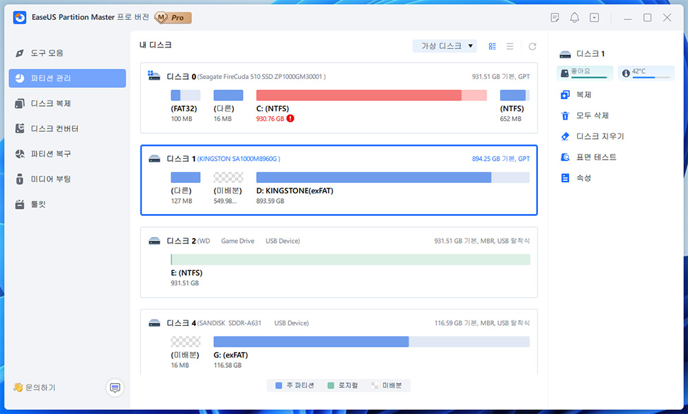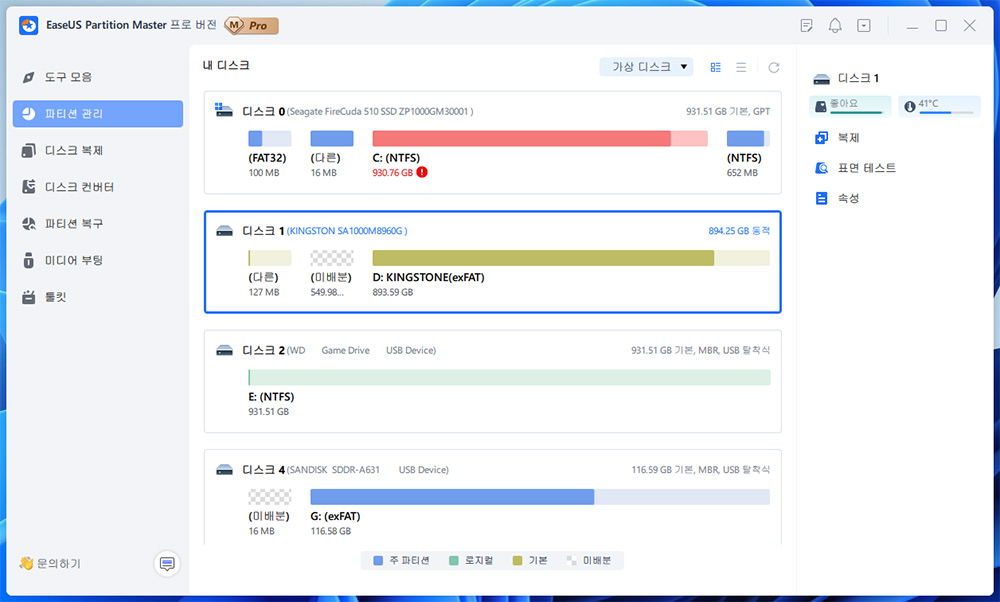 최고의 파티션 소프트웨어, Windows 파티션 관리자 - EaseUS Partition Master Professional