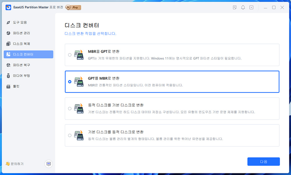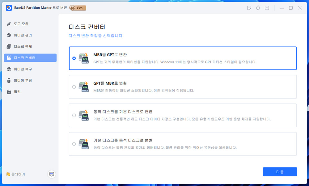 EaseUS Partition Master 파티션 관리 프로그램 파티션 복구 동적 MBR GPT 변환