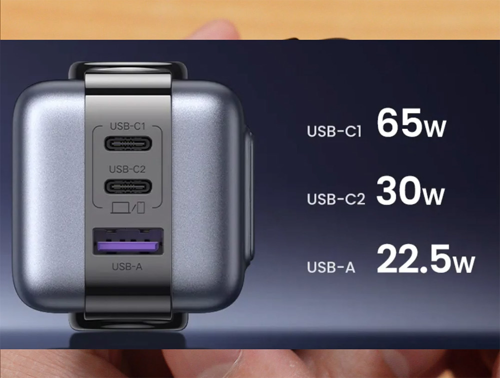 1번 포트는 65W, 2번포트는 30W, 3번포트는 22.5W 최대 가능 합니다. 총 합산출력은 65W로 제한이 있어서 여러기기를 동시에 연결시에는 각 포트의 출력이 낮아집니다.