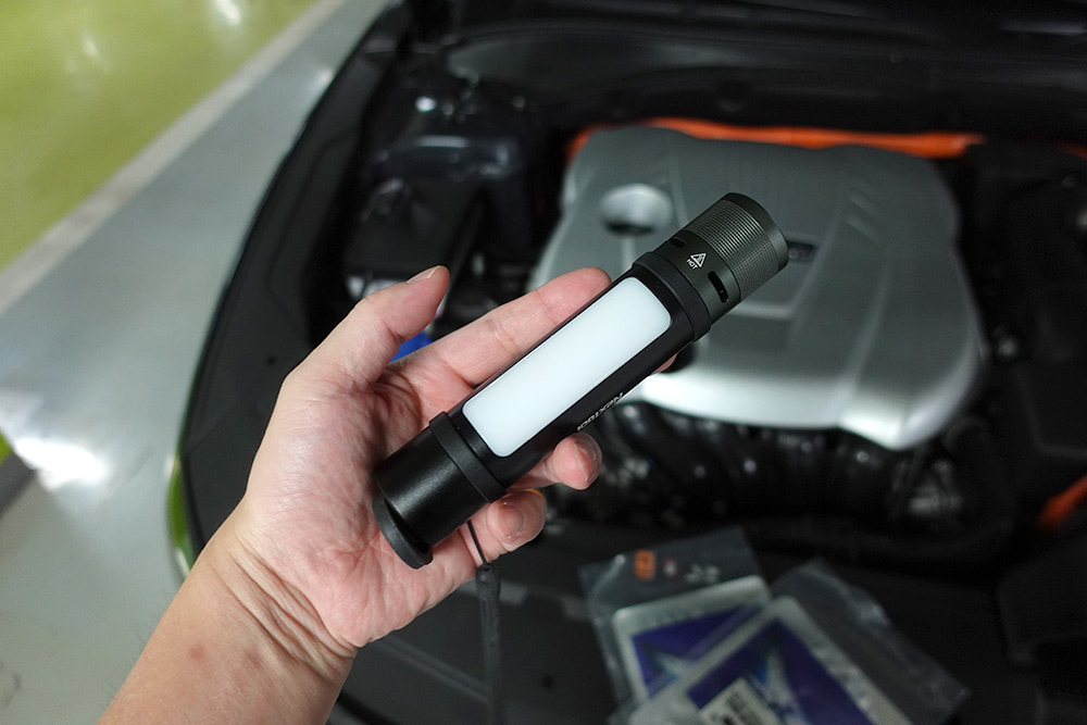 그런데 지하주차장이나 밤늦게 작업하려고 보면 생각보다 안쪽이 어둡습니다. 이럴때는 붙일 수 있는 손전등 쓰시면 좋습니다. NEXTOOL 제품을 쓰는데요. 이거 괜찮습니다.